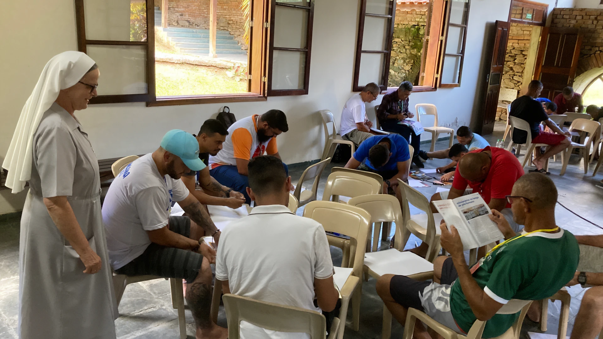 Uma irmã trabalha diretamente, com os acolhidos do Centro Masculino, oferecendo-lhes acompanhamento terapêutico ou espiritual, além de tratamento com biomagnetismo;