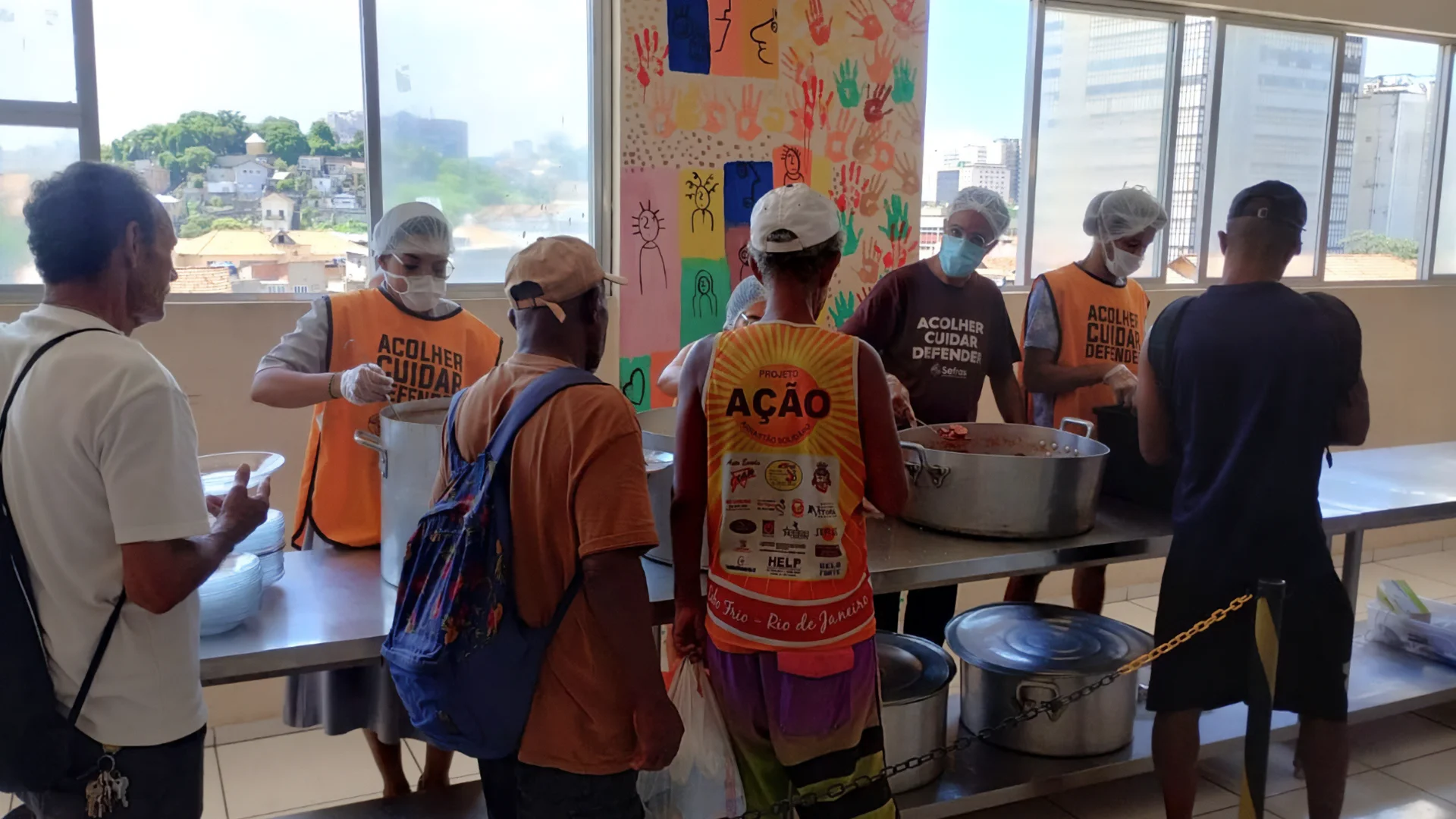 No projeto franciscano SEFRAS, no centro do Rio de Janeiro onde atende a população em situação de rua. São servidas 320 refeições diariamente, além de 100 banhos, distribuição de roupas e outros atendimentos essenciais.